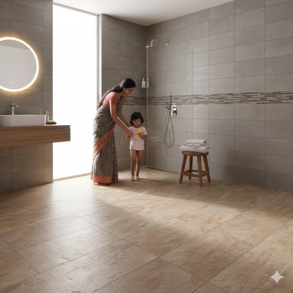 With wet and slippery floors being common in Indian bathrooms, anti-skid tiles are a must-have. Designed with matte or textured finishes, they enhance safety without compromising style.